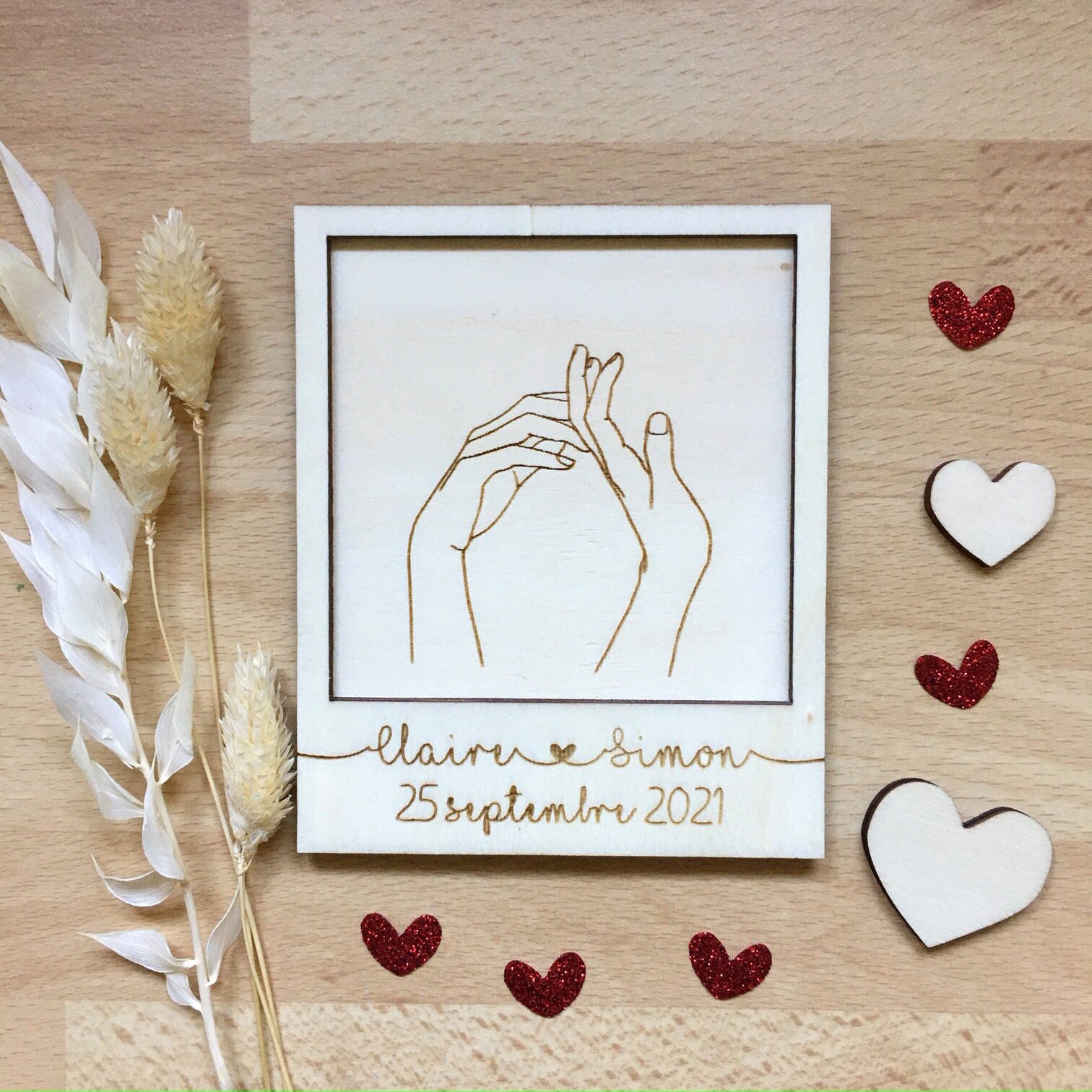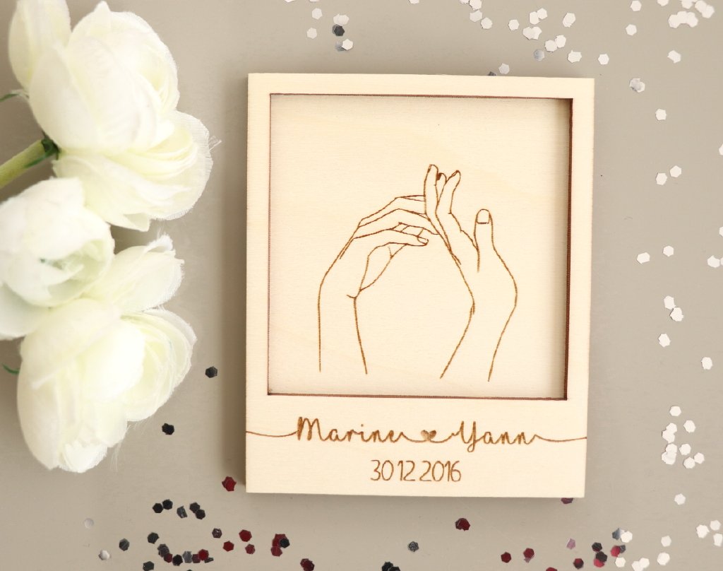 ~ Carte en bois gravé Mains couple à personnaliser ~