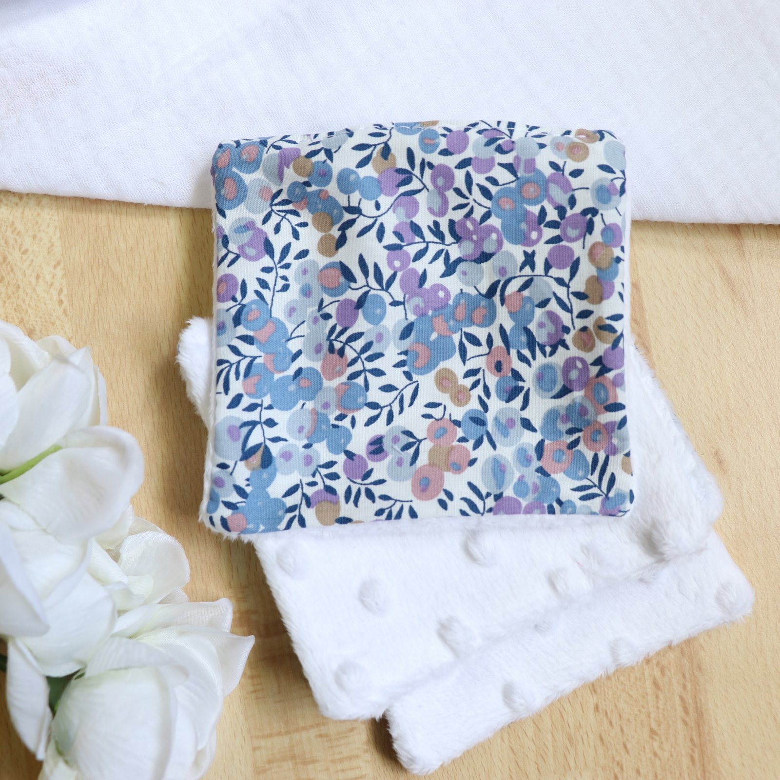 Conseils d’entretien : Lavage à 30°C, séchage à plat à l’air libre. Au cas où la lingette est très sale, frotter à l’eau savonneuse avant le passage en machine.