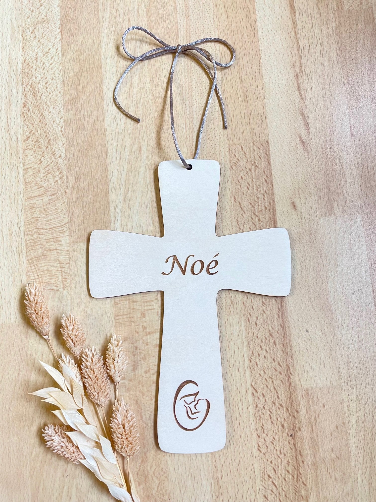 Croix en bois gravée 20cm personnalisée
