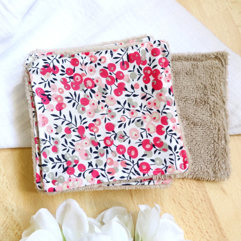 Lingette lavable bambou et liberty rose
