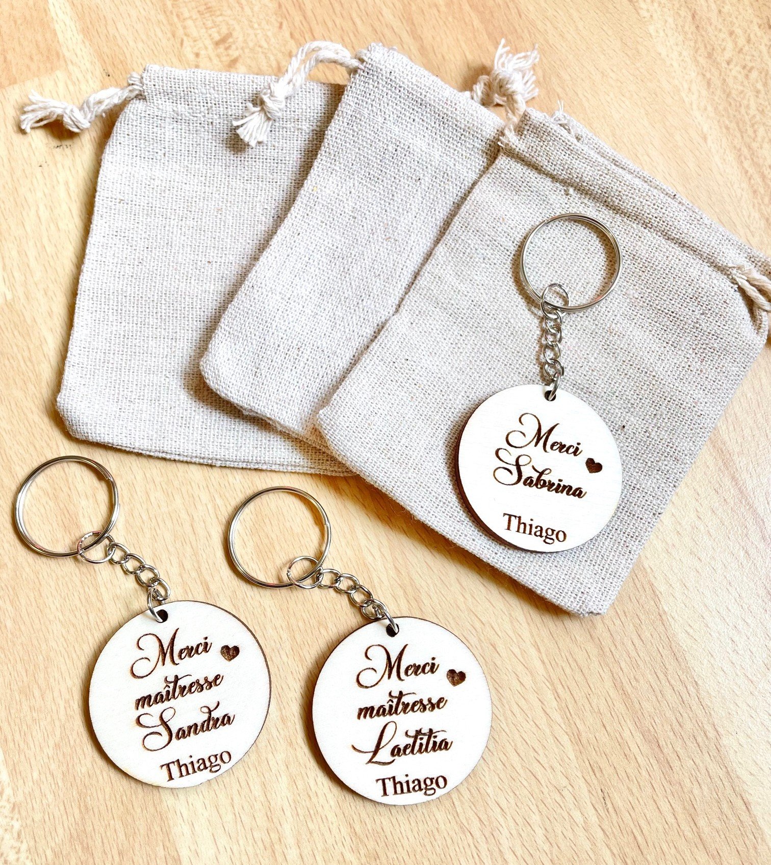 ATELIERNAT~ Porte-clés rond « Merci maîtresse » à personnaliser ~